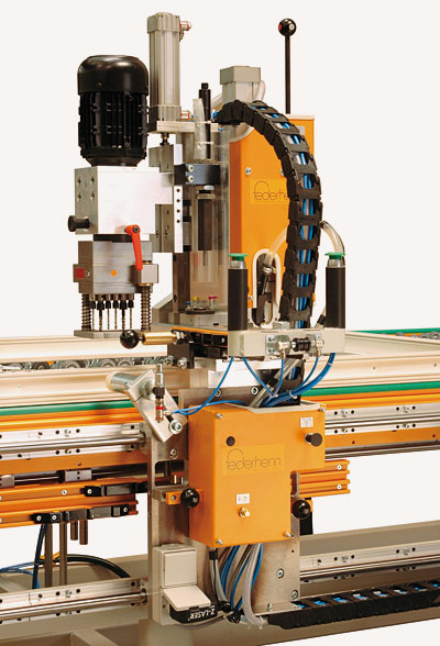 Zum automatischen Bohren und Verschrauben der Eck- und Scherenlager.