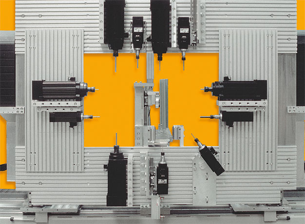 | Basisversion • Schraubstation • G-Modul mit • 4 PVC-Fräsmotoren • 1 Stahl/PVC-Bohreinheit • Oliven-Bohreinheit PVC/Stahl • PVC-Profile ausgelegt für Länge: 350-3500 mm Breite: max. 115 mm Höhe: max. 140 mm |