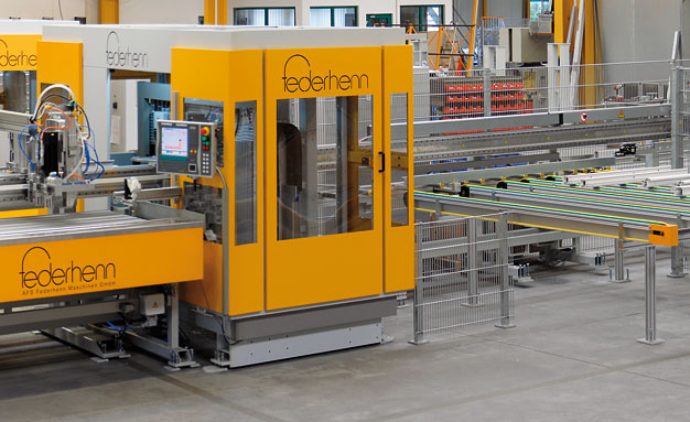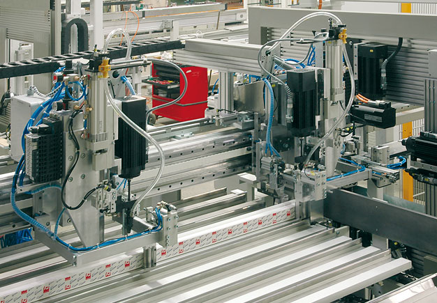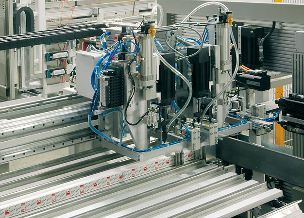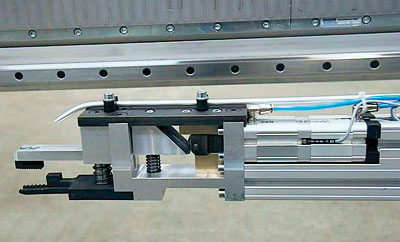• NC-Zange (180 m/min, mit 2-Achsen-Lage-Positionierung) greift das Profil und fördert in x-Achs-Richtung
