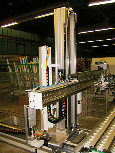 • Stab-Sortieranlage zum automatischen Ablegen der fertigen Stäbe in Fachwagen