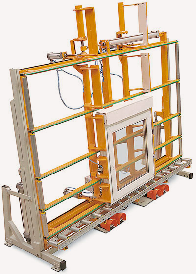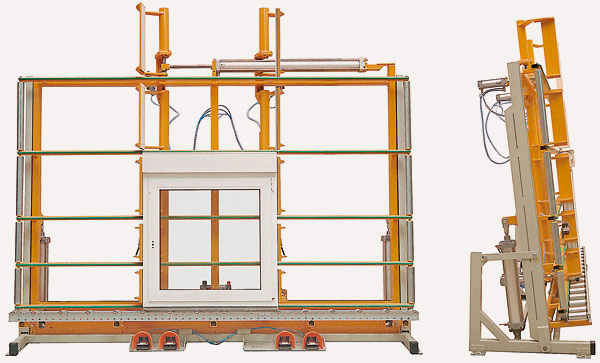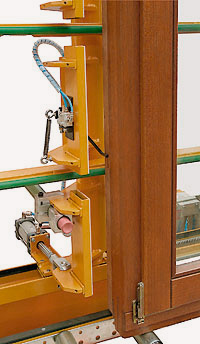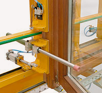 Pneumatisch ausfahrbare Versiegelungsanschläge, rechts und links am Pressbalken montiert.