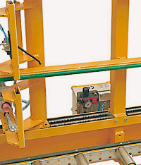 Zusätzliche Sicherheits-Endschalter, rechts und links am Pressbalken montiert; beim Betrieb mit automatischer Ablaufsteuerung.