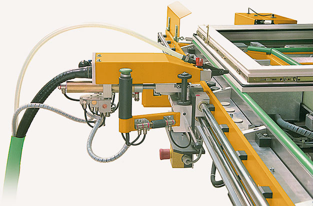 Автоматически- опускаемые наружние упоры. Универсальны при фиксировании створок из профиля различной ширины. Станция легко интегрируется в технологическую линию.