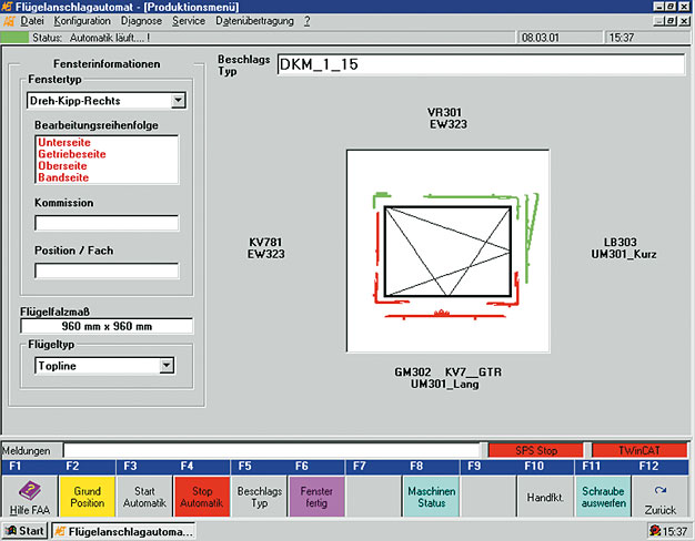 Монтажная станция S2, для полуавтоматического крепления фурнитуры на створки. Время монтажа одной створки от 2,8 до 1,9 минут, в зависимости от количества монтируемых частей. Оснащёна индустриальным компьютером с различными пакетами программного обеспечения.